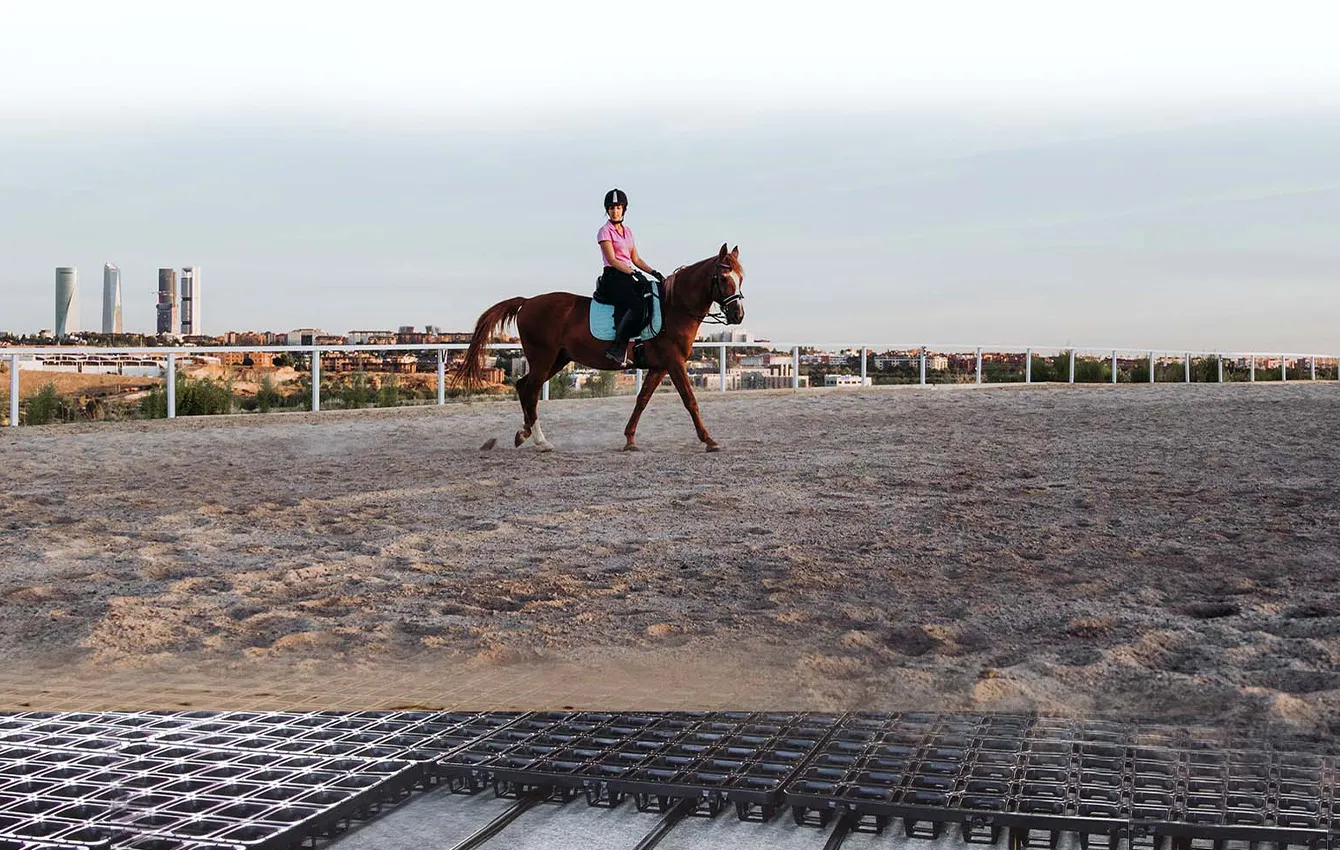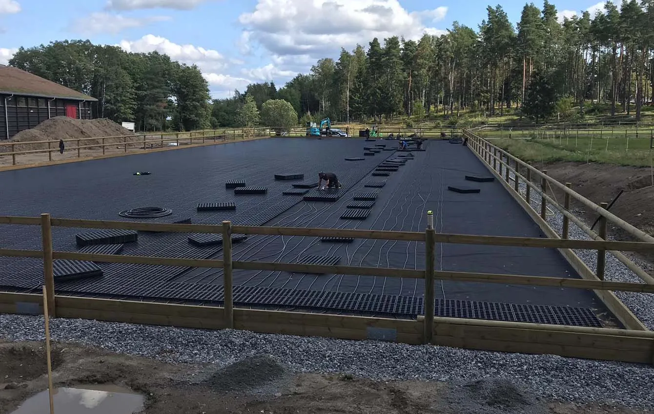 Efficient, safe and water-saving underfloor irrigation for riding surfaces.