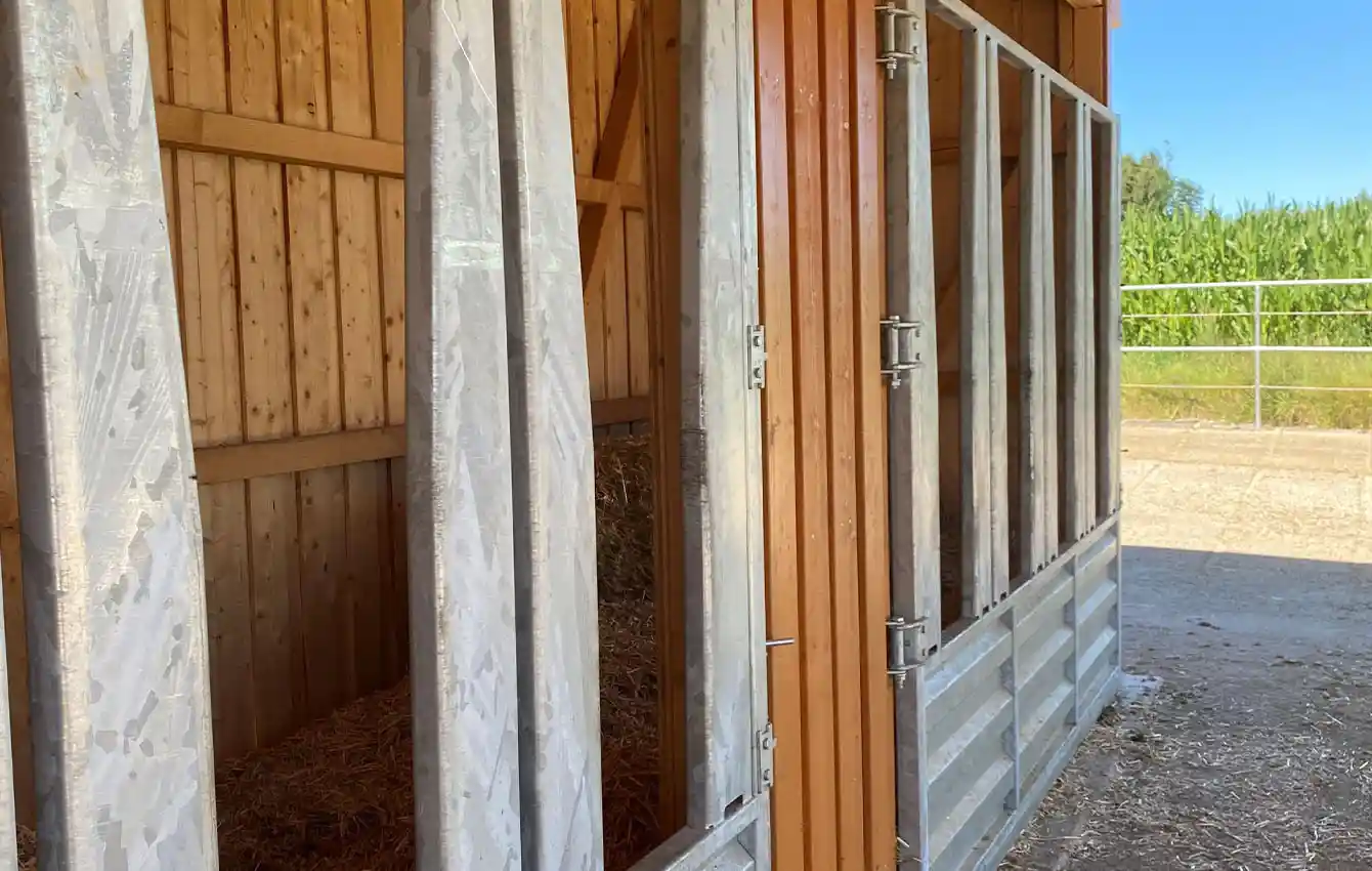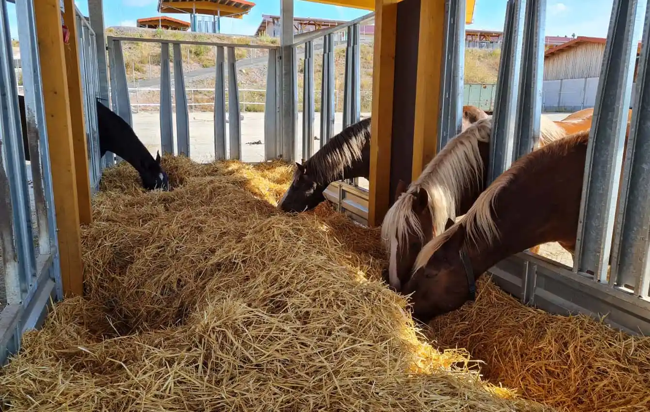 Horse owners can ideally complement their automated feeding systems with HIT hay racks for feeding hay and straw. HIT hay racks are designed with both horse-friendly functionality and labour efficiency in mind. Thanks to their modular construction, they can be adapted to any installation situation specific to the yard.