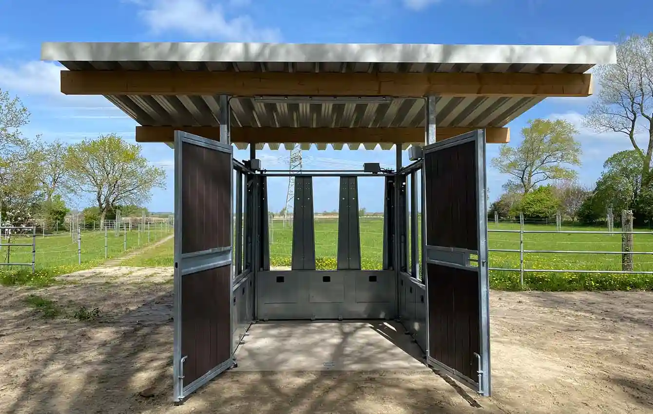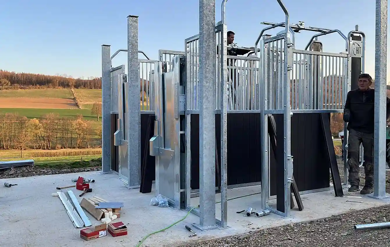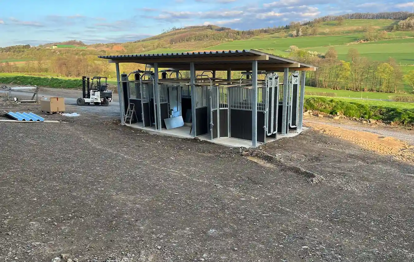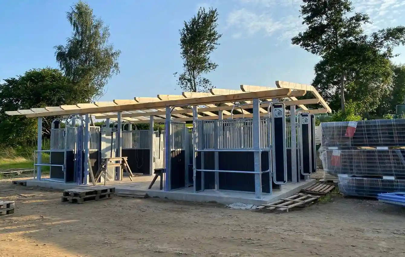 To make it as easy as possible for horse owners to construct roofing for the time-controlled hay dispensers, transponder-controlled feeding stations and selection gates, as well as hay racks, HIT-Aktiv offers dedicated roof supports and gates for this purpose.